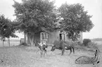 En prisbelönt ko visas upp i trädgården på Ugglehults gård, Aneboda. 1909.