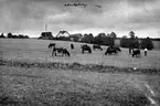 Hulda Jansson vallar kor i skogskanten. 1930-talet. Reprofotograf: Gunnar Berggren.