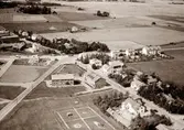 Gungplan, dit barnen gärna tog sig för att gunga på brädorna och i gungorna. Eva Brundin till vänster med en lekkamrat. På höjden syns navigationsskolan, som fortfarande då fungerade som navigationsskola. Bilden från ca 1923. Skolan blev sedan nedlagd och blev mödravårdscentral. Huset låg nära Centralgatan, bara ett kvarter bort. Platsen ligger vid hörnet av Kaserngatan och Södra Kungsgatan och upptas numera av praktiska realskolan. Själva huset med navigationsskolan är alltså rivet och kullen utjämnad.