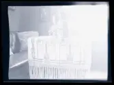 Katalogkort med foto. Påskrift H-b-f. Ovanåker Väggduk, knyppling. Hälsingland Ovanåkers sn. Haga fäb. L. 113 cm., br. 185 cm. Lärft av (otydligt) ling. t varp -5-6-7 inslagstr. på 1 cm. Spetsar resp. 11 o 6 cm. br. knypplade av (otydligt) ling. Märkt HN i korssöm med grå bomullstr. "Funnen i Haga fäbodare uppsatt mellan timmerväggen o panelen. En våd borttagen finns i Haga." Äg. Ovanåkers Hembygdsförening Lån 1935. E.U.9214.
