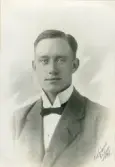 Ateljébild på en man i kostym. Enligt Walter Olsons journal är bilden beställd av Folke Sverkersson.