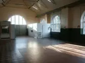 Interiör av Sveriges första 3-fas kraftstation 1893 efter det generator 5 för belysning installerats. Den var på 150 hk och 1-fas. Från generator 5 leder endast två ledare upp till taket. Uppförd av ASEA.