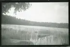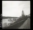 Anteckning påsiktskopia: Norrbotten, Överkalix sn. Övre Lansjärvs by. Vestervik no 2. Foto fr. s.v. invid gårdstomten. Skrövälvens utlopp i Öv. lansjärvsjön. Vårhögvatten, timmer."