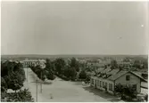 Vy över Söderhamn. Till höger i bild skymtas järnvägsstationen.