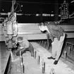 Dop och sjösättning av fartyget 131 M/T Bellami. Från vänster Uddevallavarvets dåvarande VD Helge Hagelin, bredvid honom skeppsredaren och varvets grundare Gustaf B. Thordén.