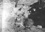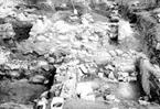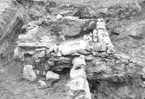 Hovby sn. Östby ödekyrkogård med kyrkoruinen. Foto: Linds Fototjänst, Lidköping 1957.