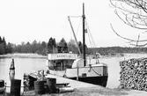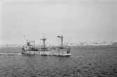 Båtdäcket, styrbords sida akterifrån. Båtkapell, dävertar, solsegelstöttor, luftkanalen från fläktmaskinen, en livbälteslår.