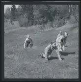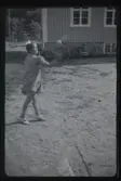 Barn leker i gruset utanför familjen Morthensens villa Solveden, Djursholm.