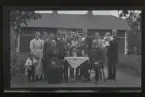 "Målsjö, födelsedag." Grupporträtt vid ett födelsedagsfirande.