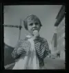 Gatuförsäljare. En pojke bär ett tråg med bröd på huvudet.