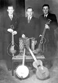 Text till bilden:"Orkester består av en dam på flygel, Herrarna spelar fiol, basfiol och klarinett. V. U. skolan 1933-34".