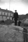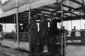 Kammarherre von Platen, prinsessan Ingeborg, prins Carl och Thure Bonander med okända damer vid tennispaviljongen "Troja"
