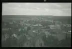 Flygfoto över Kumla. Kumla varmbadhus är med på bild. I maj 1923 påbörjades bygget, klart 1924. Fotot är troligen från mitten eller slutet av 1920-talet (1924-1930).