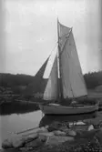 Enligt fotografens notering: "Norum Stenungsund. Segelbåt "Hejsan" Parker".