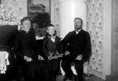 FAMILJ STÅENDE I TRÄDGÅRDEN FRAMFÖR HUSET.