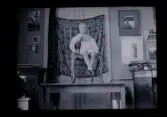 Porträtt av fru Sundell I bild även äldre porträtt av en man och ett barn Interiör