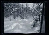 Barn på skidor. På tomten till familjen Morthensens villa Solveden, Djursholm.