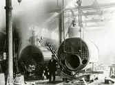Fotografi ur album av Hjalmar Löfquists patenterade elektriska ång- och varmvattenpannor, för industrier, kraftverk och bostäder. 200 k.w. Ångpanna, 4 atm. tryck. 115, Saltsjökvarns aktiebolag, Stockholm.