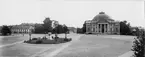 Vy av Nya Soldathemmet i Linköping. Fotograferat från en höjd i Trädgårdsföreningen, omkring 1921-1924.
