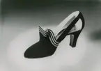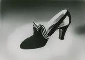 "Aftonskor". Sandalsko med hög klack och silverfärgade kantband.
