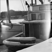 Från utgrävningen av båtfyndet i Gamla hamnen i Västerås, 1935. Aktern på det andra fartyget.