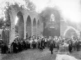 'Del av Alvastra klosterruin. Med träd växande i ruinen. :: :: Ingår i serie med fotonr. 3642-3645.'