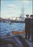 Amiral Erik af Klint till vänster och chefsarkeolog och museidirektör för Sjöhistoriska museet och Wasavarvet, Per Lundström, vid invigningen av Wasavarvet.