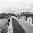 Sundet och stranden sett från strandställets nordsida. Stranden mot Öresund. Skåne, Malmöhus län, Råå.