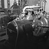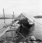 Bo Lundvall (till vänster) och Lars Barkman (till höger) lägger ned en skulptur i konserveringskar på, konserveringsanläggningen på Beckholmen.