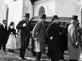 "Kistan bärs ut från Salsta slottskapell" för färd till Lena kyrka - friherre Fredrik von Essens jordfästning