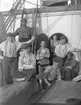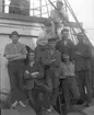 Fotografens notering: "Bli inte rädd för mig, jag var ej hälften så arg som jag syns vara, längst till höger står en Dansk. och det är Tredje styrman i midten".