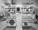 "Vallonien på Louis De Geers tid och idag" utställningen. Vänster monter, Louis Abrys skrårelief, heraldisk samling, reflektor och talrik. Höger monter, skrårelief, bestick, ljussax, mynt och tallrik.