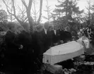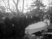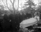 Enligt noteringar: "Kista med kransar, på bakgården till Hanssons affärsfastighet. Troligen begravning för Arthur Hansson." (BJ)