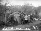 "När källaren var ny. Potatiskällaren på Stämmen [Kville socken år 1921]. Karl och Olena Krok, Helen Krok, Ann Krok, okänd.