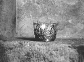 Missionskyrkan i Gränna. Från vänster: Gullvi Danielsson, Jan Wetter, pastor Karl Midnäs, troligen scouten Tommy Carlssono samt Ann-Marie Gustafsson. I handen håller Midnäs en brudkrona som syns på bild gm.ph82.1