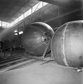 Cementbehållare för järnvägsvagn, den 17 juni 1957 Swendsén & Wikström Värmepannefabrik på Brynäs köptes upp av Svenska Järnvägsverkstad och fick 1955 namnet ASJ - PARCA.