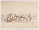 "Artillerie de campagne en Gotland. Camp de Visby juin 1854." Fältartilleri på manöver. Tuschteckning av Fritz von Dardel.