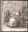 Teckning av Fritz von Dardel. En kvinna med kanna i handen och en man med en vinflaska. "Tack snälla Ohlson hviskade Anna, champagne serverar jag sjelf."