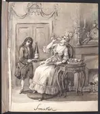 "Smaken". En dam dricker ett glas champagne. Tuschlavering av Fritz von Dardel.