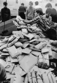 Ankommande post i "ljusgården". De bruna kuverten öppnas i skärmaskin.