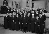 Deltagarna i nordiska diakonissansalternas konferens samlade utanför Samariterhemmet under sitt Uppsalabesök. I mitten syns Elisabeth Eidem och ärkebiskop Erling Eidem