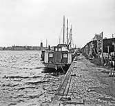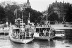 Utsikt över parti av Skeppsbron med Räntmästartrappan. Längst till höger Djurgårdsfärjan "Djurgården 4".