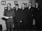 "Upländsk hembygdsrörelse står starkare än någonsin" - Hållnäs hembygdsförening, med köpman Dan Westergren i spetsen, tar emot Disa gilles pris på Östgöta studentnation, Uppsala 1943