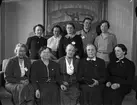 "Förgrundsfigurer" vid Uppsala läns Husmodersförbunds ombudsmöte på Uplands nation, S:t Larsgatan 11 - Karin Thulin, Sigrid Elfvin, ordförande Fanny Nilsson, vice ordförande Gertrud Wiklund, Viola Lyttkens, Alice Eriksson, Agnes Osvald, Anna Tamm-Liedberg, Hélène Kjersén och Ingegerd Englund