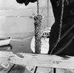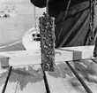 Ekensbergs varv 1970; utskuren fartygsplåt på golvet i stora plåthallen