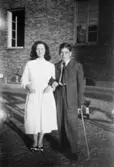 "Karantänsförläggning" på Kvarnbyskolan för flyktingar från koncentrationsläger i Tyskland 1945. Manlig flykting med sköterska.