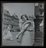 fotgängare, häst, hus, vagn, lyktstolpe, torg, rivningstomt