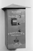 T.h. främre halvan av automaten, med myntbehållaren nedtill.