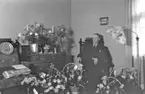 Fru Iverson mottar blombukett 4/5 1959.