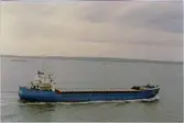 Vykort visande ångbåtsbryggan vid Styrsö Tånge i Västergötland. Passagerarångfartyget Lärkan angör bryggan.
